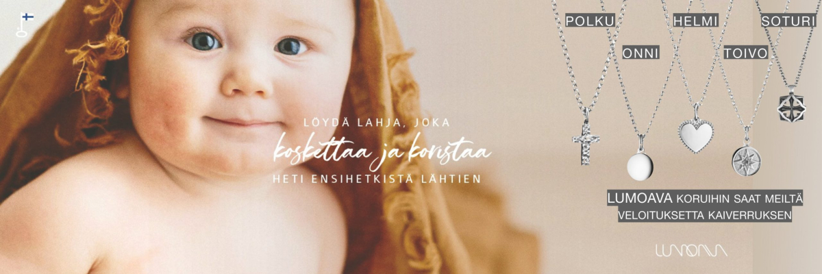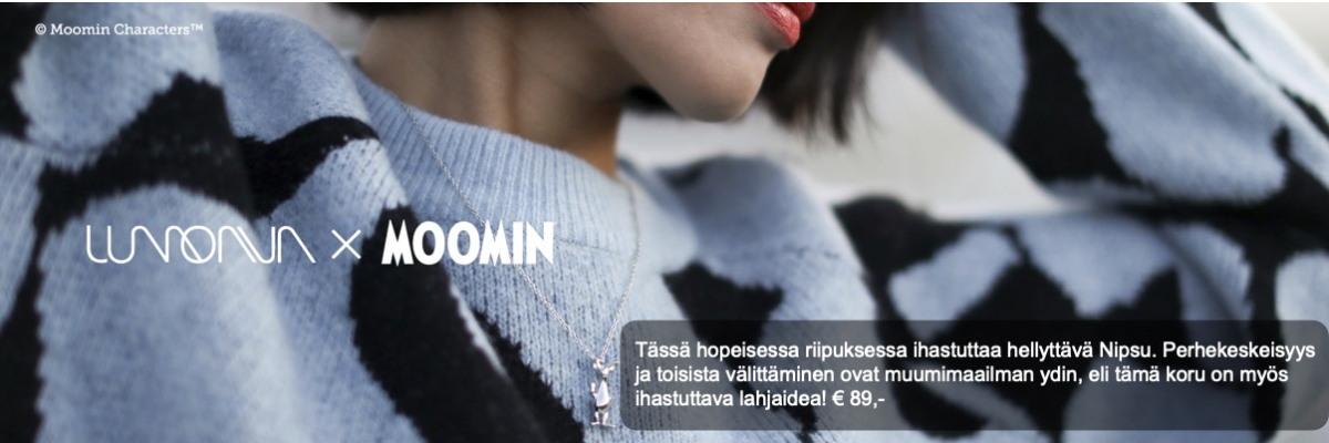 Maininki-choker tuo Lumoavan valikoimaan aivan uudenlaisen korun. Hopealevystä taivutetun koruosan kimaltava pintakuvio syntyy prässäämällä, linjakas muotoilu ja kesäillan järvenselkää heijasteleva pinta tekevät siitä näyttävän ja modernin katseenvangitsijan. Koru kiinnitetään kaulaan nauhoilla solmimalla ja rusetin voi sijoittaa joko koruosan viereen tai piilottaa taakse niskan puolelle. Kiinnitystapana kannattaa suosia perinteistä ”kengännauharusettia” eli yksinkertainen perussolmu alle ja rusettisolmu päälle. Solmu avautuu kevyesti nauhan päästä vetämällä. Saatavilla myös hopeisena. Korun koko 102x9mm, satiininauhan leveys 6mm.